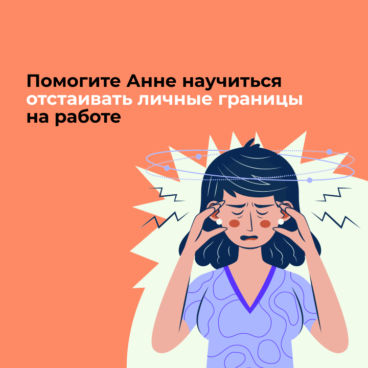 Анна Сердечная* - сотрудница благотворительного фонда, которая хочет продолжить терапию, чтобы улучшить свою коммуникацию с коллегами, научиться четче выстраивать границы и отказывать от навязанной работы, которая мешает её основным обязанностям.